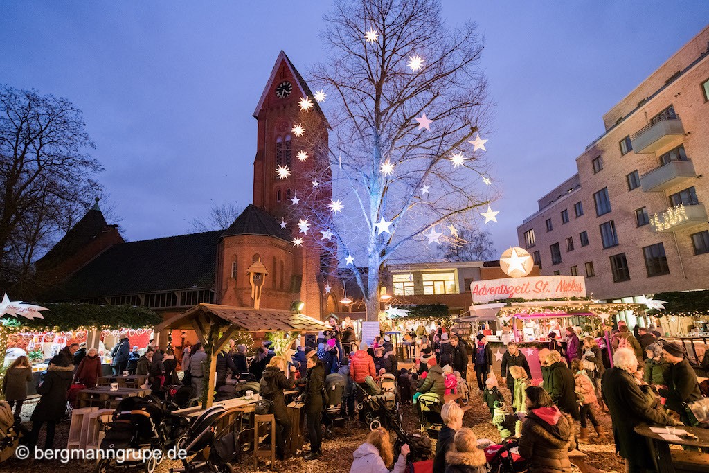 Wenn in Hoheluft wieder der Duft von Glühwein und winterlichen Gewürzen in der Luft liegt, beginnt eine besondere Zeit: Ab dem 25. November öffnet die Adventszeit St. Markus auf dem Kirchplatz der St.-Markus-Kirche ihre Türen. Der stimmungsvolle Adventsmarkt verbindet nachhaltige Konzepte, soziales Engagement und norddeutsche Gemütlichkeit – ein beliebter Treffpunkt für Nachbar:innen, Familien und Freund:innen des Stadtteils.