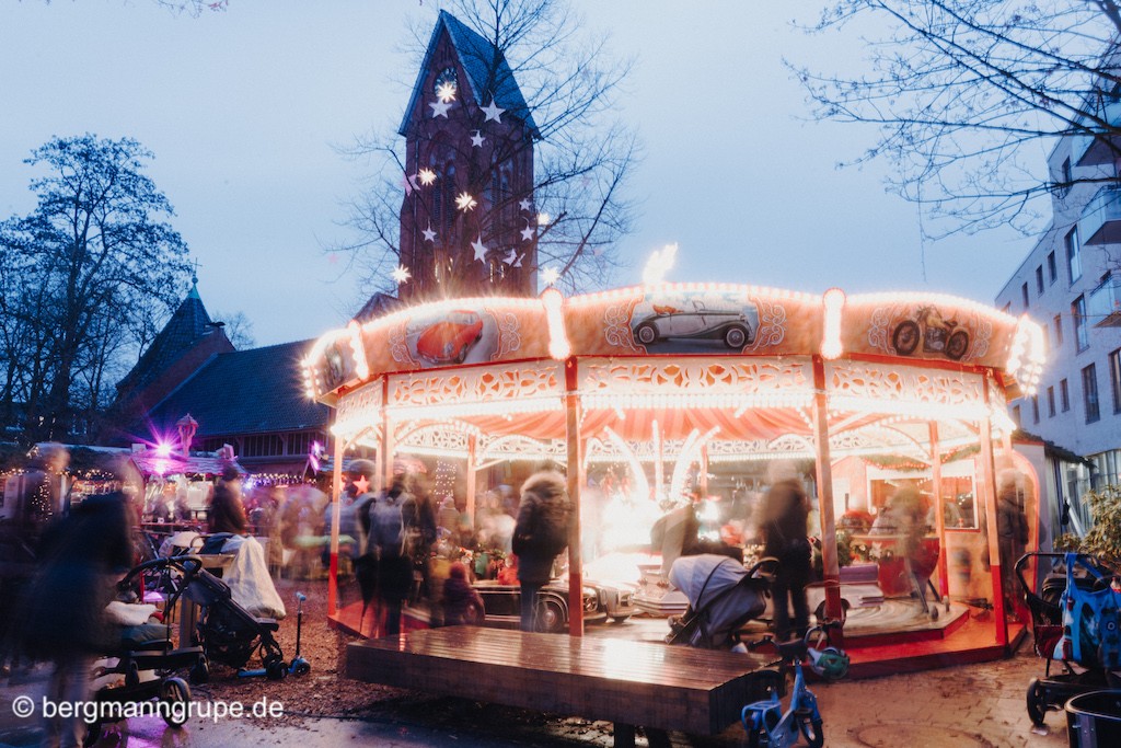Weihnachtsmarkt Barmbek - Hüttendorf mit Kinderkarussell