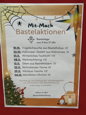 Mit-Mach - Bastelaktionen Samstag von 11.00 bis 17.00 Uhr