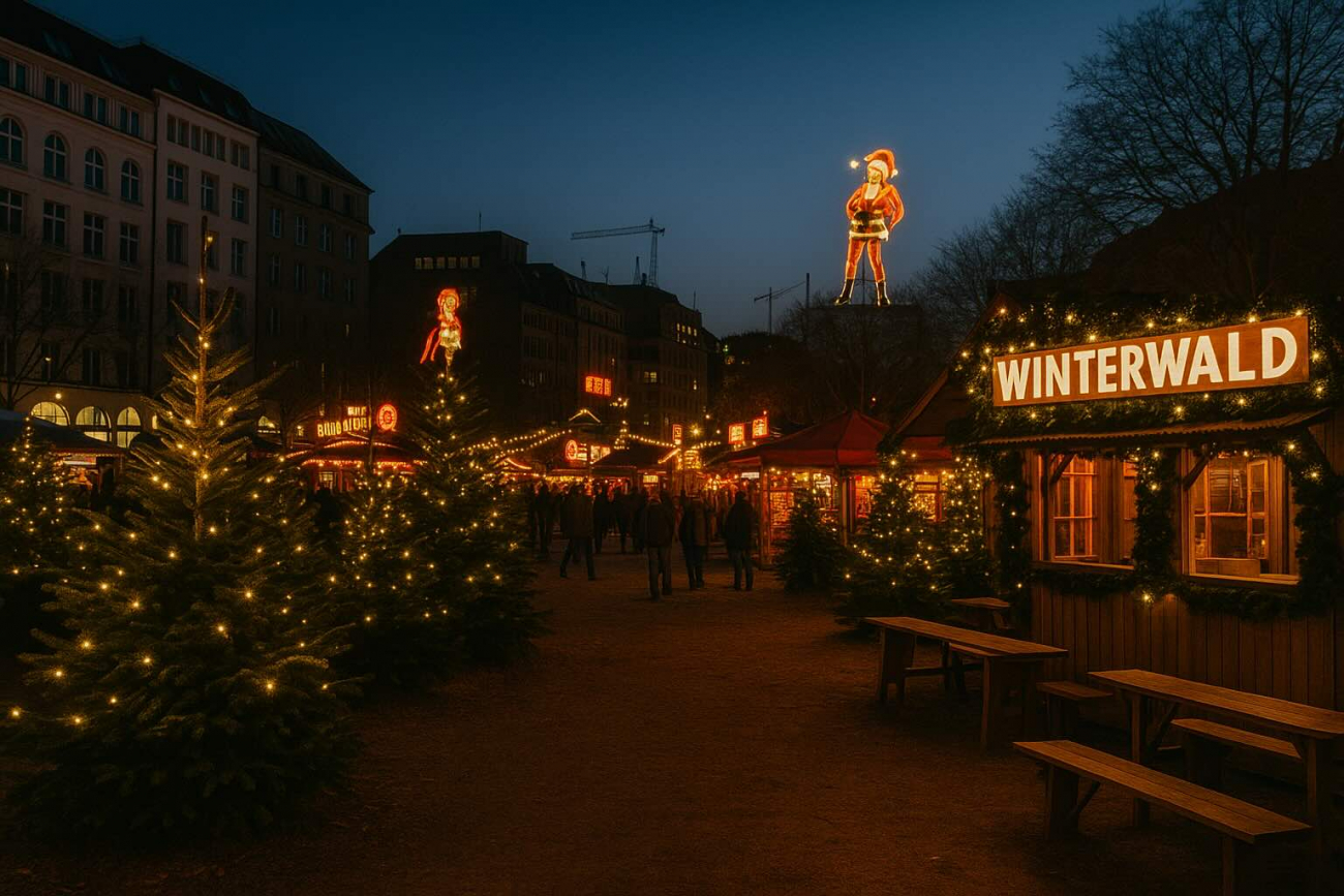 Auf Santa Pauli und auf dem Winterdeck trifft Tannenbaum auf Neonlicht, Glühwein auf Livemusik und Besinnlichkeit auf hanseatische Gelassenheit. Während Santa Pauli jedes Jahr zeigt, dass Weihnachten auch mit Augenzwinkern gefeiert werden darf, bietet der Winterwald direkt daneben eine kleine Auszeit mitten im Kieztrubel – mit Lichterglanz, Feuerstellen und richtig viel Atmosphäre.